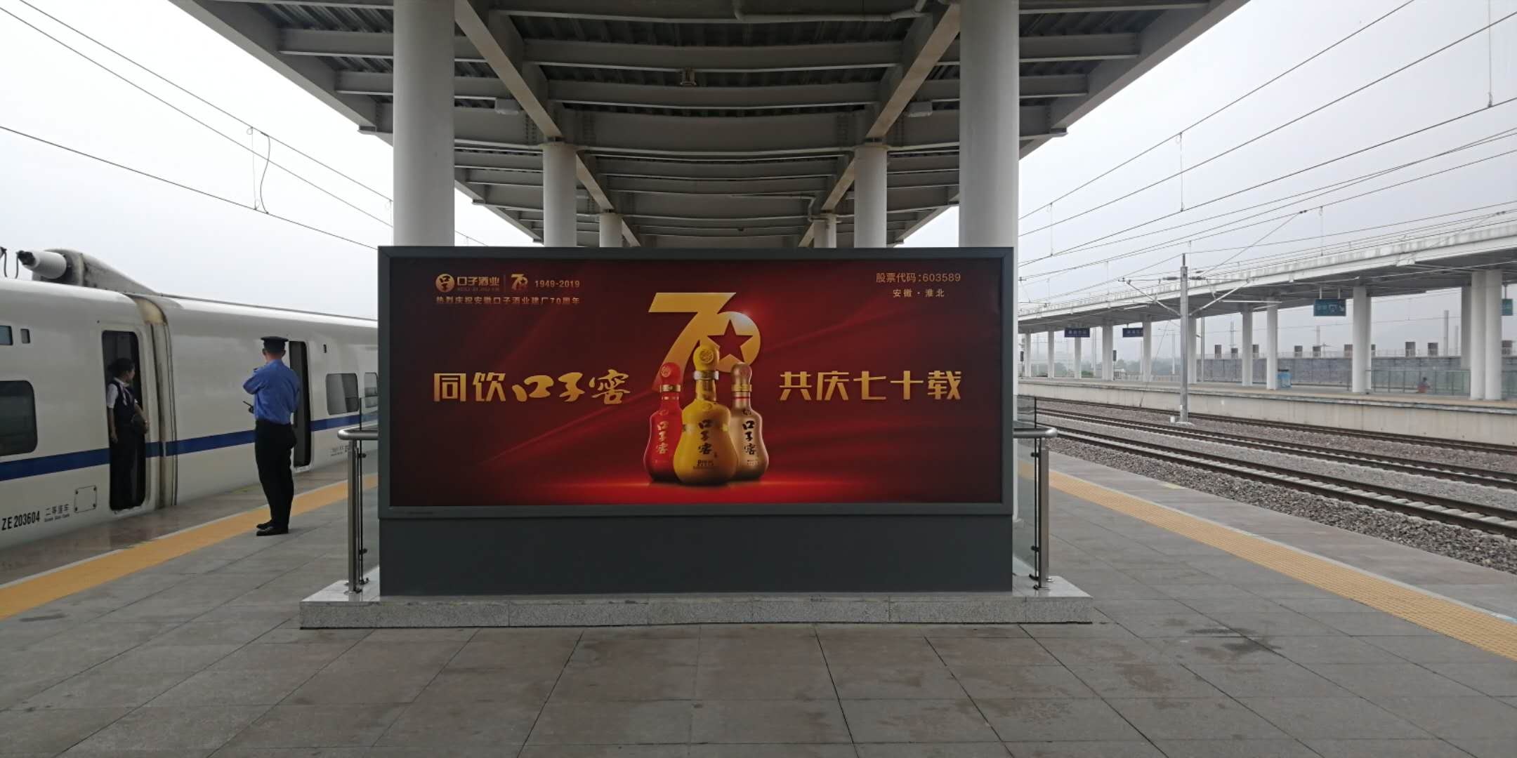 口子窖在安徽合福线布局宣传。