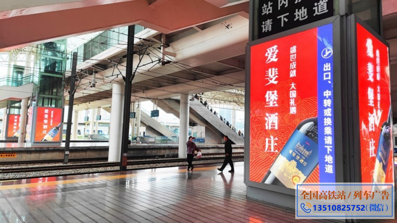 媒体概述:► 本媒体位于站台层站台电梯,高铁到站时先入为主第一眼,离站时依依不舍最后一眼媒体。 ► 成组呈现,叠加记忆,视觉效果震撼,100%覆盖出发、到达及途径旅客。
