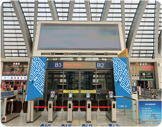 媒体位置及形式:高架层候车大厅检票口两侧/壁挂灯箱
