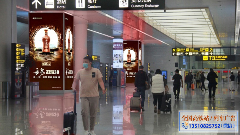 重庆江北国际机T3航站楼到达出口包柱灯箱广告