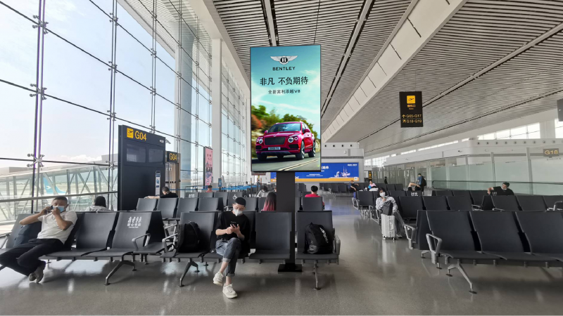 重庆江北国际机场国内候机厅座椅区内V字屏广告