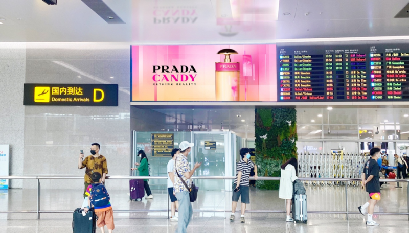 重庆江北国际机场国内行李厅出口上方LED屏广告